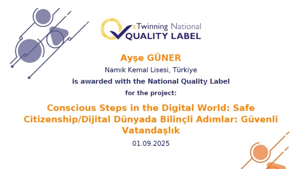 2024-2025 Eğitim Öğretim yılında yürüttüğümüz uluslararası eTwinning projelerimiz kalite etiketi ile ödüllendirildi.Emeği geçen öğretmen ve öğrencilerimizi tebrik ederiz